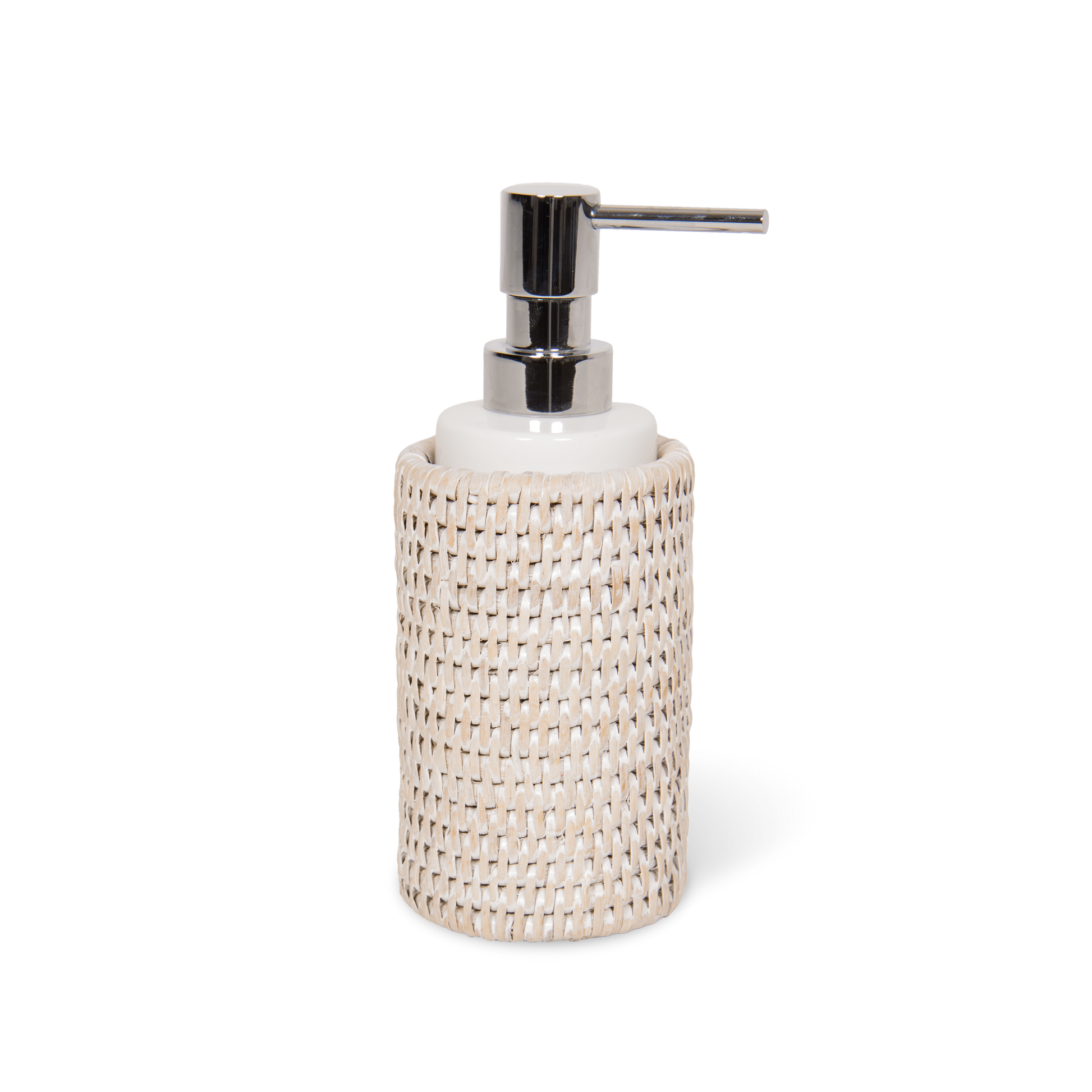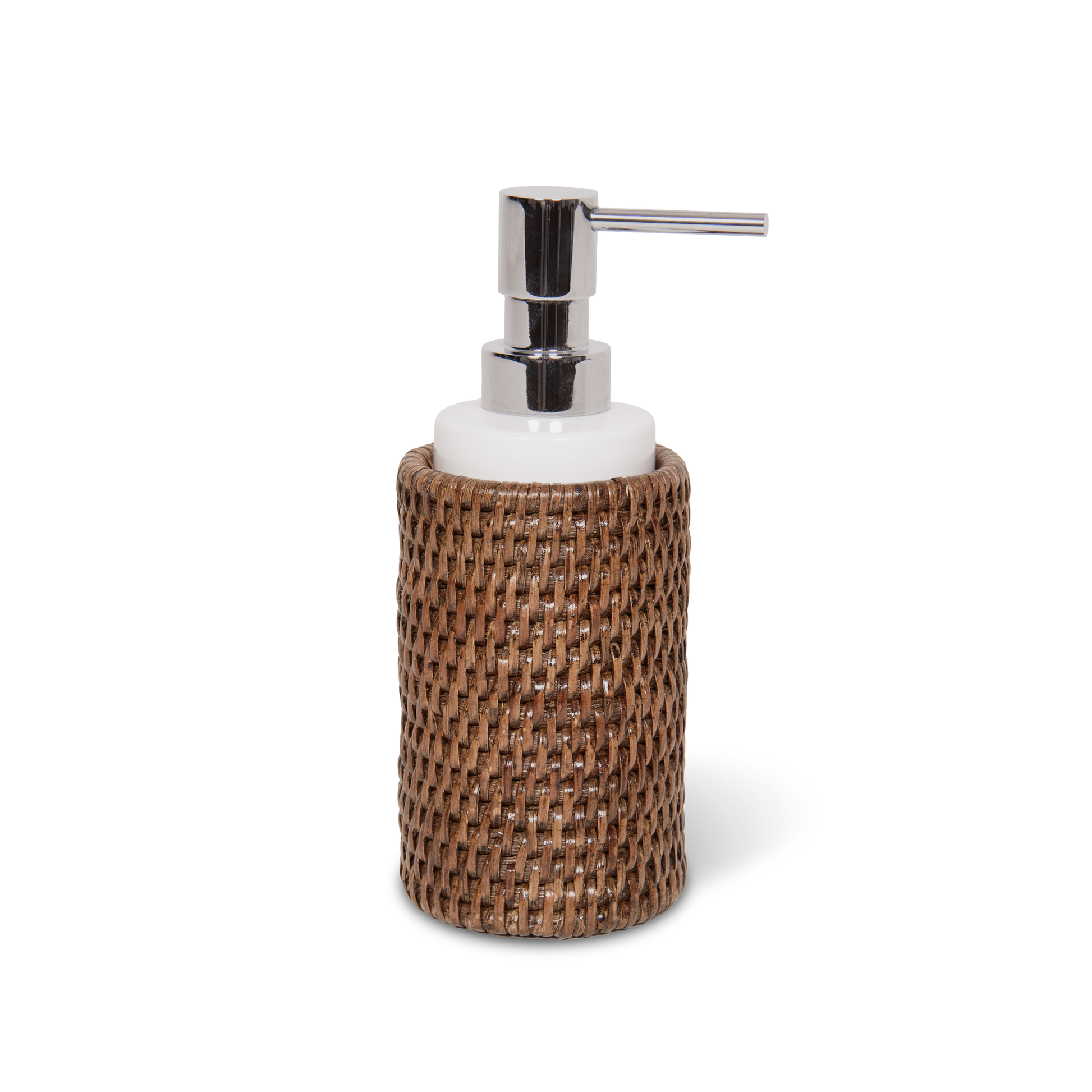 Dozownik mydła Basket z naturalnego rattanu to cenny dodatek na umywalkę lub półkę łazienkową: dozownik posiada białą porcelanową wkładkę z chromowaną pompką. Ten łatwy w pielęgnacji materiał idealnie nadaje się do łazienki i nadaje pomieszczeniu naturalnego uroku.
