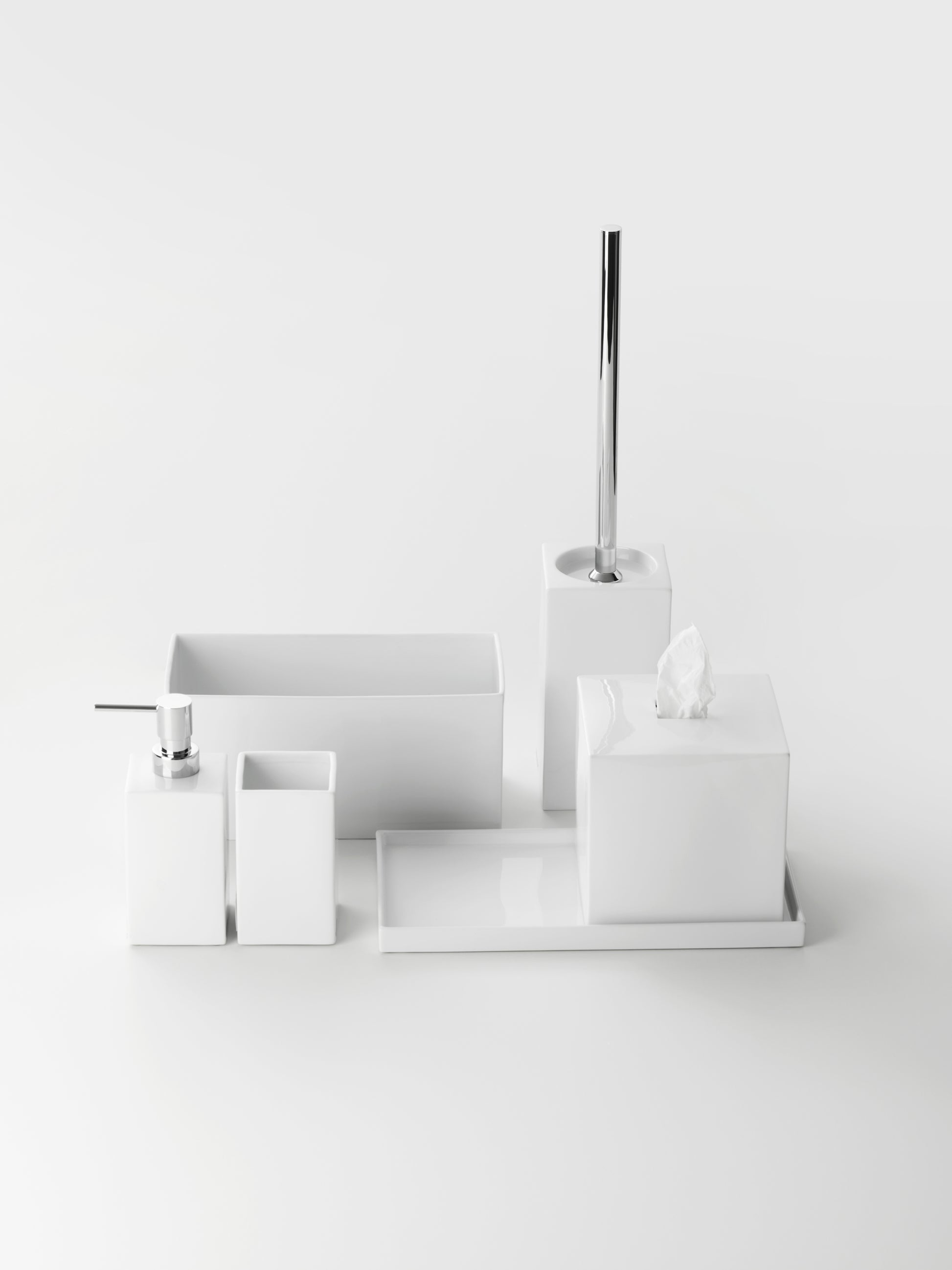 Geradlinig und dezent sorgt das flache Porzellantablett für zusätzliche Ordnung. Tägliche Utensilien wie Kämme, Haarspangen und Uhren finden darauf ihren Platz, ohne durcheinander zu geraten.
