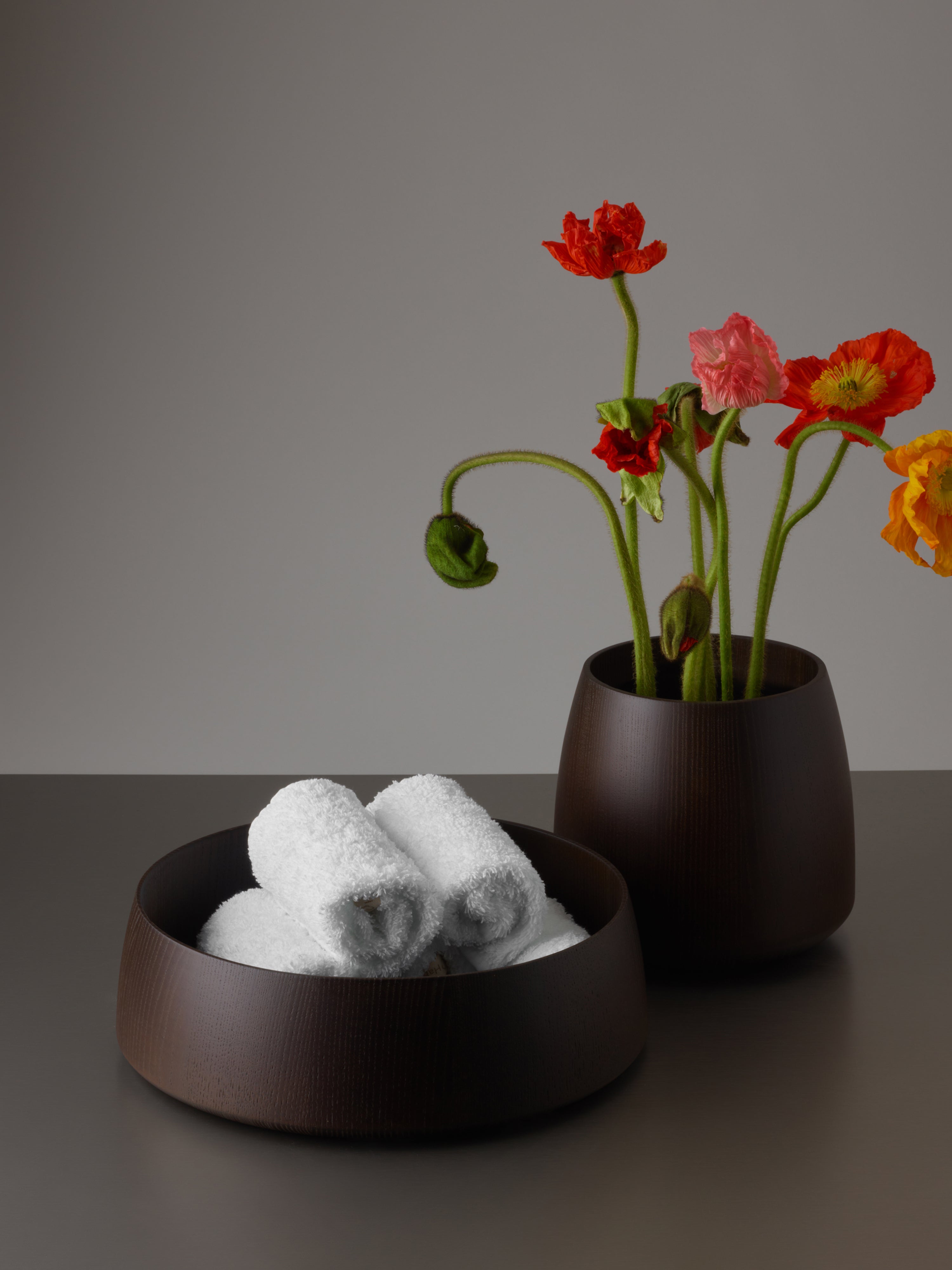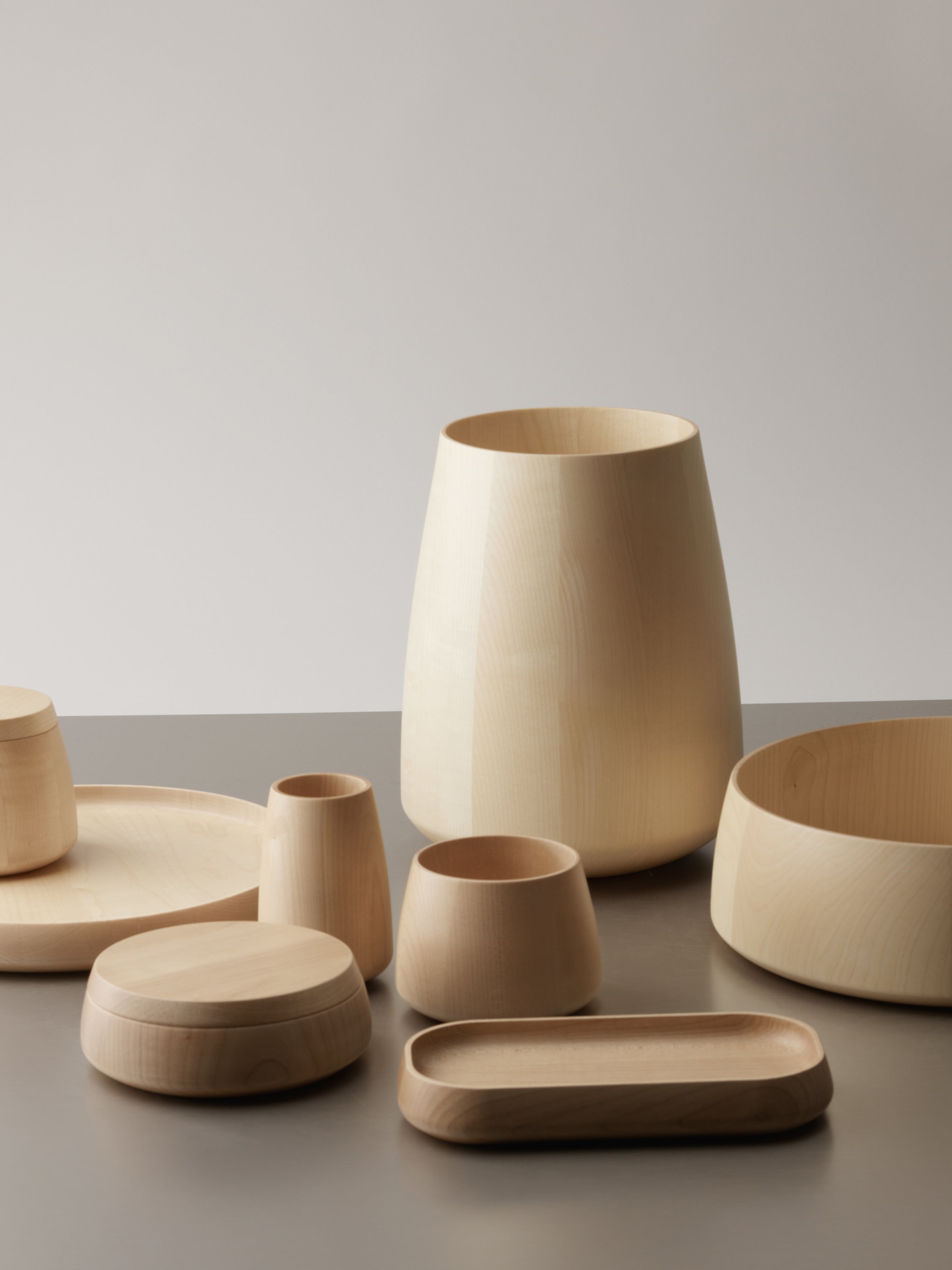 Helles Ahorn und dunkle Esche. Zwei Töne, klar differenziert und doch im Gleichgewicht. Konzipiert für funktionale Schönheit und langlebige Nutzung. Zeitlos und über Generationen hinweg anziehend.